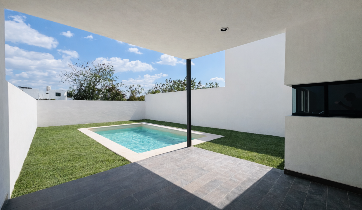 Disfruta de un amplio patio con alberca, ideal para reuniones, descanso y el estilo de vida que Mérida ofrece.